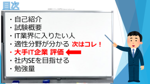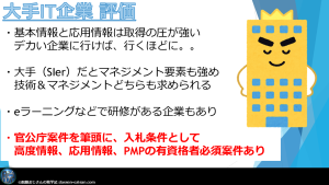 基本情報技術者試験の大手企業からの評価を考察していきます。