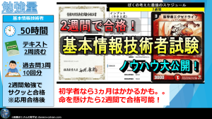 ザっと50時間、2週間程度の勉強で基本情報技術者試験に私は合格できました。