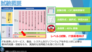 ITスキルレベル2に設定されており、IT技術者向けの試験であることが分かります。
