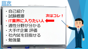 まず言えるのは、とりあえずIT業界に入りたい人にはオススメということですね。