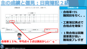 続いて、日商簿記2級の成績と感想です。