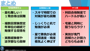 今までの話を踏まえ、宅建・簿記・FPはどれから受験すべきか、どういった点に注意をすべきか