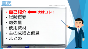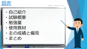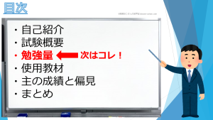 まず、私が各試験に合格するために費やした勉強量についてスライドにまとめてみました。