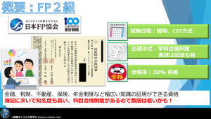 ファイナンシャルプランナー2級の試験概要です。